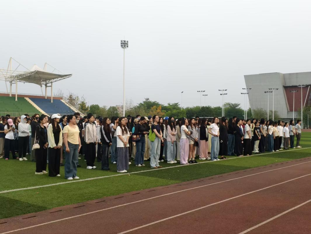 全体学生在松园田径场庄严集结,举行升旗仪式。
